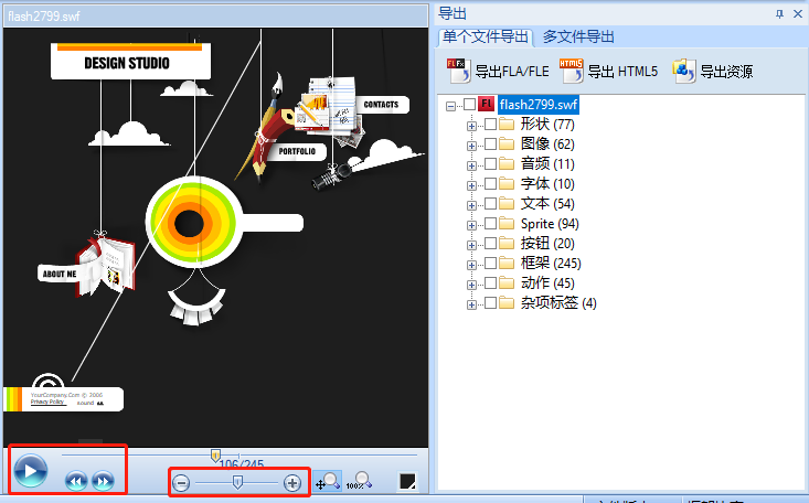 第一步,在电脑上打开闪客精灵软件,在软件中打开需要经修改文字的flash文件,如下图所示的页面左侧,可以随时预览flash修改的效果。