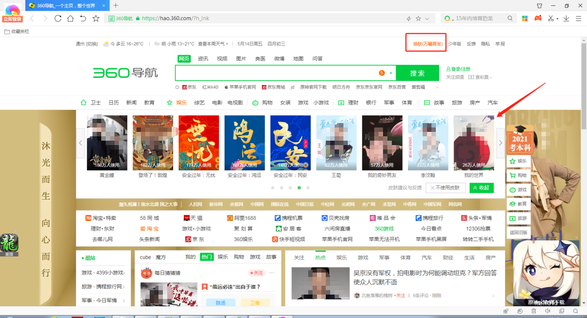 如果没有特别满意的,也可以在浏览器首页点击右上方换肤,里面也有很多好看的主题。有兴趣的小伙伴可以打开浏览器看看,希望这篇文章可以帮助大家!