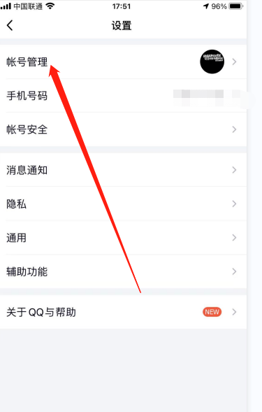 3. 进入到设置的界面后,点击账号管理。
