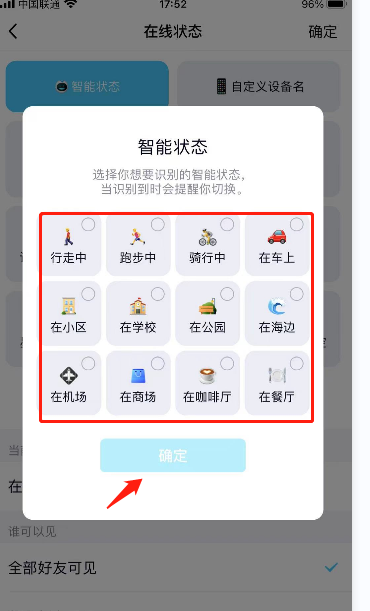 5. 然后进入到智能状态界面后,点击地球状态,最后点击确定即可。