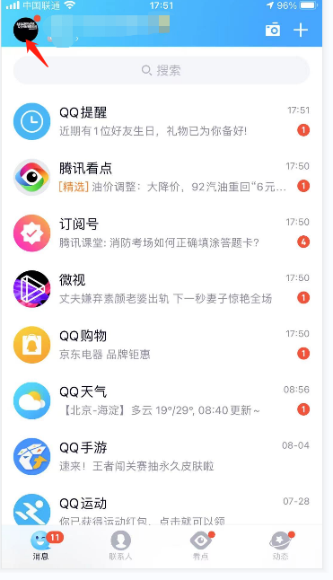 1. 首先打开QQ进入到主界面后,点击个人的头像。