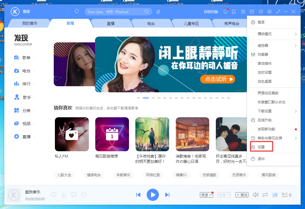 第四步,进入到酷狗音乐的选项设置界面后,我们在【常规设置】当中,找到【其他设置】一栏下方的【关闭“今日推荐”】功能,并勾选此功能就可以了,此时酷狗音乐烦人的广告也就不见了。