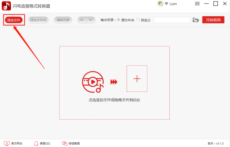 第一步,双击打开闪电音频格式转换器,点击页面左上方的“添加文件”,将需要合并格式的音频全部上传到软件上。