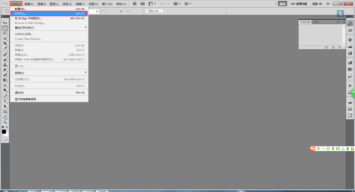 第一步,打开电脑上的PS软件,进入到PS界面当中后,我们点击【文件】,然后选择【打开】,将需要进行处理的图片添加到软件当中。