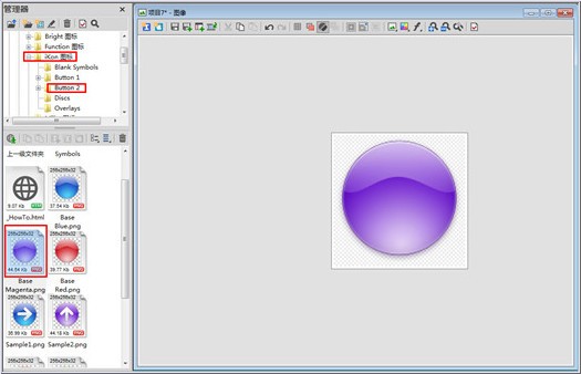 第二步,从“管理器”中选择一个喜欢的“按钮”背景图片素材,直接拖拽到工作区即可。