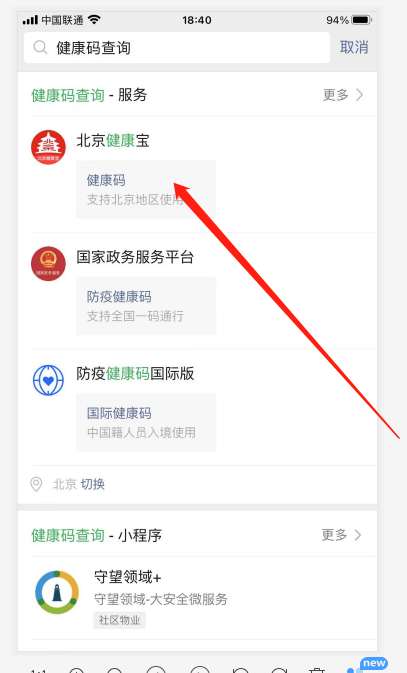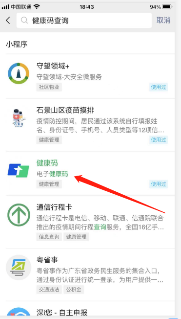 2、在小程序页面找到申请健康码的小程序,例如健康宝
