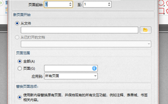 3.点击替换页面工具后,在页面中可以选择要替换的页面,然后设置页面范围,设置好后,点击确定就可以了哦。