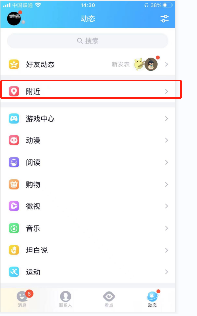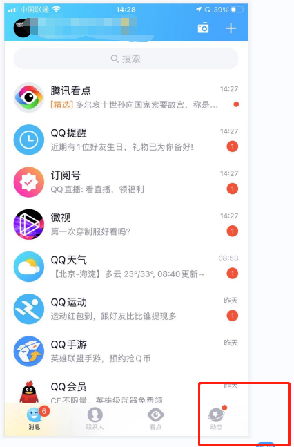 1. 打开QQ,进入到QQ的主界面后,点击动态。