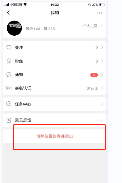 4. 进入到我的界面后,点击清除位置信息并退出即可。