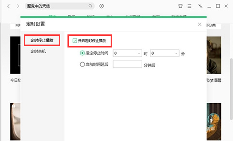 第二步,进入【定时设置窗口】,在这里设置【停止播放】和【定时关机】时间。如下图所示,只要勾选【开启定时定制播放】,然后设定停止播放时间就可以了。