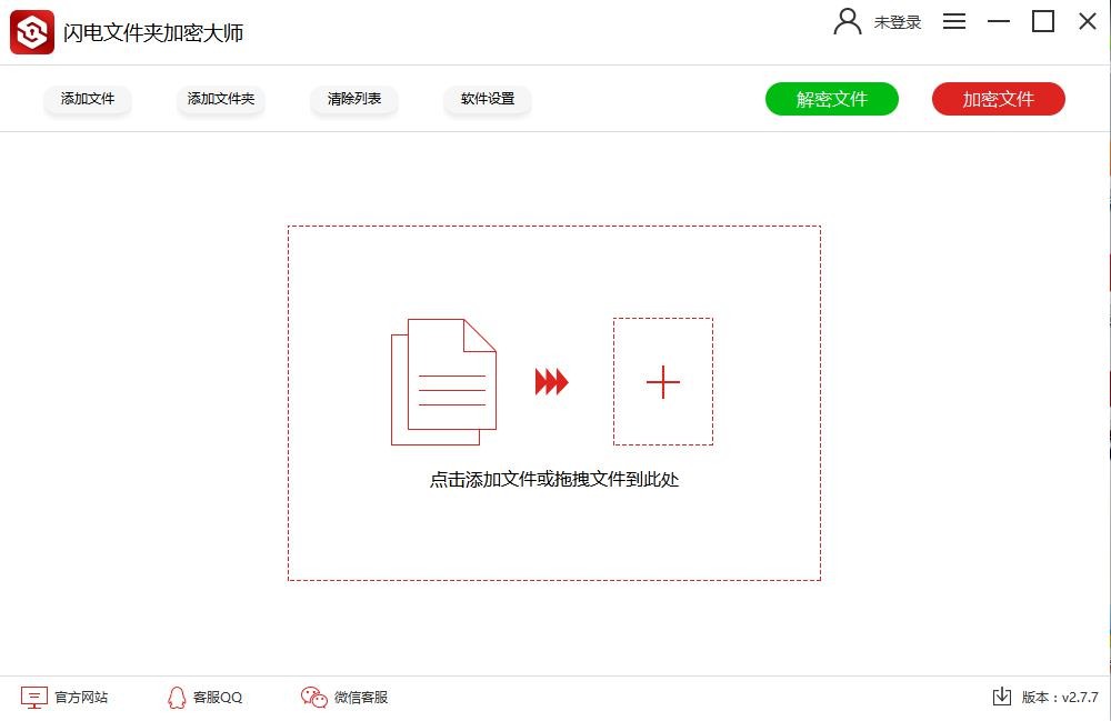 第二步,点击主页左上角的【添加文件】按钮,把想要进行加密的文件上传到闪电文件夹加密大师软件上来。