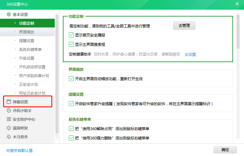 第四步,在左侧选择弹窗设置,找到网购安全提示这个分选项;