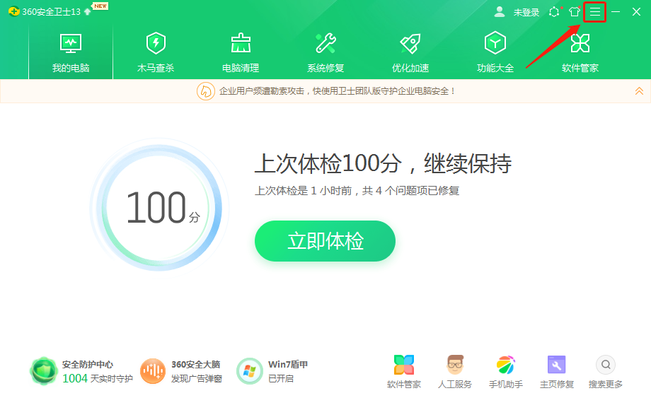 第一步,运行电脑上的360安全卫士,进入主界面;