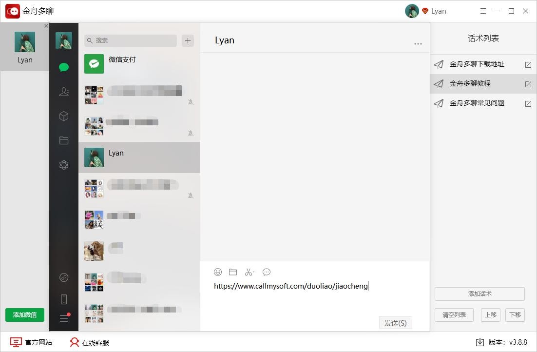 好了,以上就是话术列表的添加和使用方法了,特别是对客服类的回复非常便捷,再也不用复制粘贴了,直接点击即可发送,特别的方便。还没有下载金舟多聊的小伙伴可以来本站免费下载使用,当然电脑版微信也是有的,还有更多好用的软件免费下载。