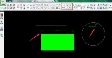 4.点击上方菜单栏红框位置的功能按钮,可以实现图形标注的功能,比如标注直线的长度,半径等,如下图所示。