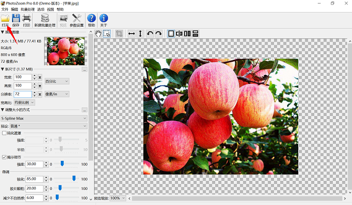 打开已安装好的Photozoom Pro软件,点击页面左上方的【打开】按钮,把需要放大的图片加入到软件中来。