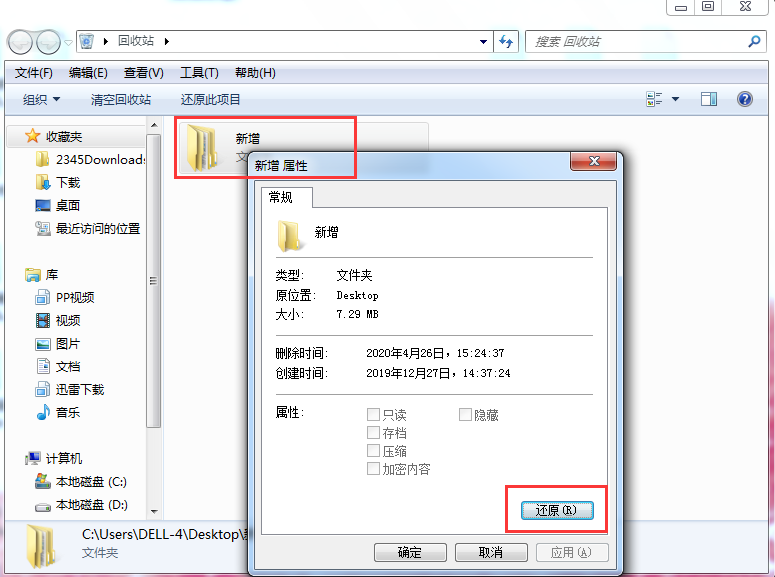 回收站是每个电脑系统自带的功能,当数据被删除后,可以直接打开回收站并找到该文件,点击“还原”即可。