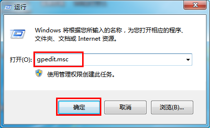 第二步,此时电脑就会弹出【运行】窗口,我们在此窗口中输入【gpedit.msc】命令,然后点击【确定】按钮,或者是按下键盘上的【Enter】回车键。