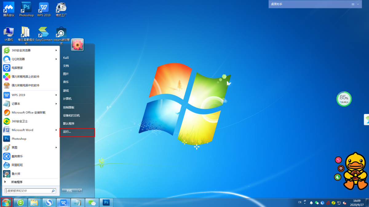 第一步,点击电脑左下角的【开始菜单】按钮,然后在弹出的界面中,找到【运行】选项,并点击打开。