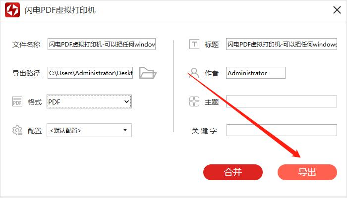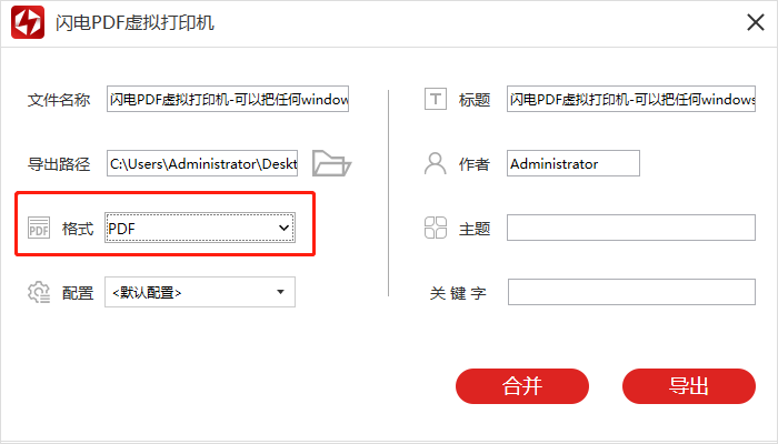 第四步,稍等一会儿后,就会跳转到【闪电PDF虚拟打印机】的界面了,在这里,我们将【格式】选择为【PDF】,同时我们还能够根据自己的实际需求,对文件名、导出路径等其他选项进行修改。