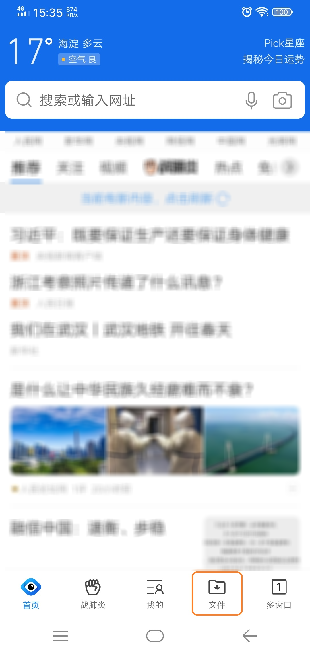 第二步,QQ浏览器打开以后,点击界面下方的【文件】选项。