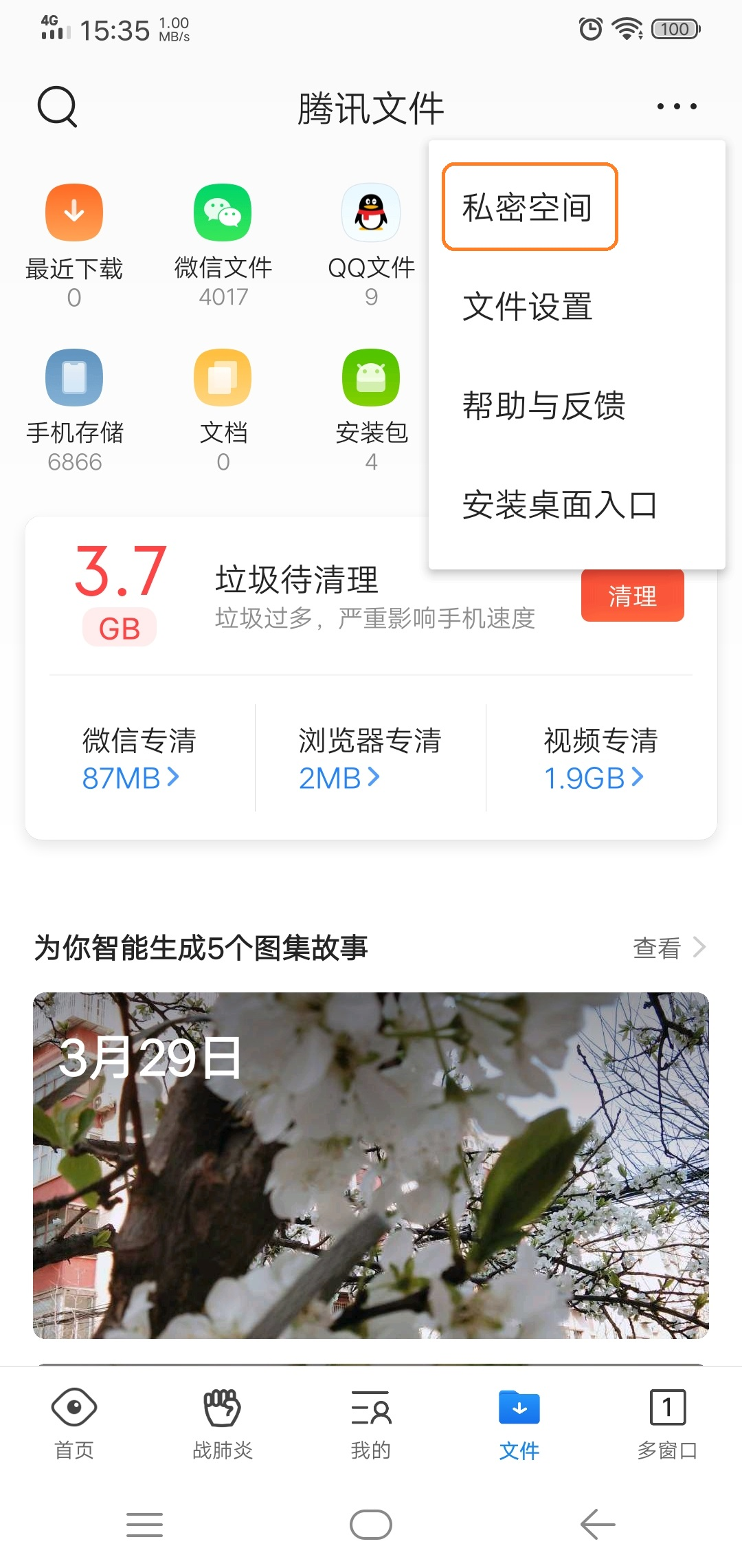 第五步,此时我们就进入到QQ浏览器的私密空间当中来了,你不仅可以查看私密空间中的图片或视频,还可以查看到私密空间中的其他文件。