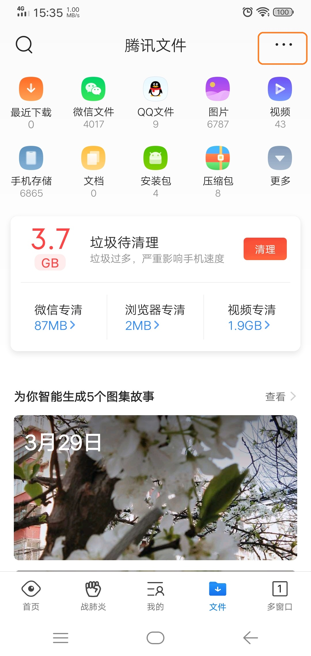 第三步,进入到腾讯文件界面后,我们点击界面右上角的【...】按钮。
